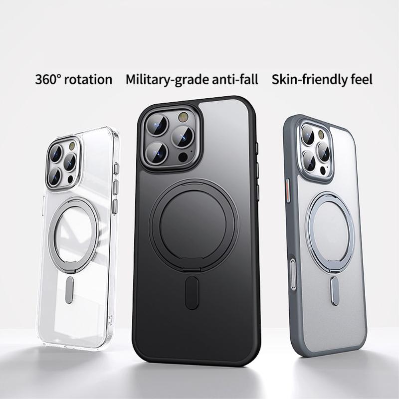 Protect your iPhone 16 Pro in style with the Magnetic Case, featuring a durable combination of TPU and acrylic with a built-in metal kickstand. This sleek matte grey cover offers superior protection and functionality, ensuring your device stays safe and convenient to use.