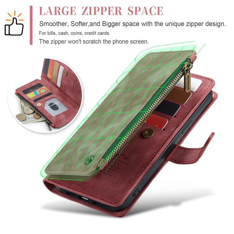 The Caseme C30 multifunctional wallet case for iPhone 16 Pro Max brings exceptional all-around protection and an exclusive, refined design. This elegant case is made of premium polyurethane, reinforced with a shock-resistant TPU inner cover that snuggles your iPhone 16 Pro Max perfectly. Meanwhile, the Caseme C30 wallet case is enhanced with numerous card slots, one large money compartment inside, and one outside zipper pocket, all protected by a secure magnetic closure.