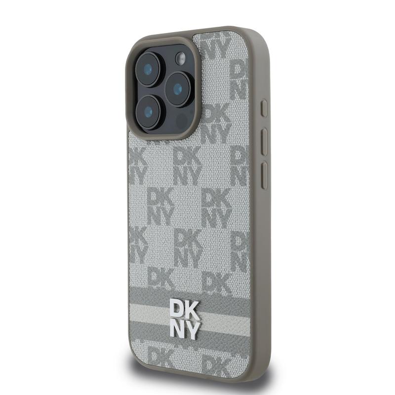 iPhone 16 Pro Max DKNY Checkered Pattern and Stripe Case - Beige