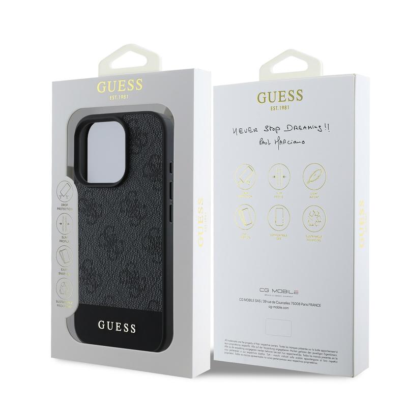 This durable case has a hard polycarbonate back and flexible TPU edges that guarantee the perfect fit, while slightly raised edges keep the display and camera of your iPhone 16 Pro Max scratch-free. The case features a metal Guess logo and luxurious leatherette texture with a recognizable 4G pattern for the classy look of your iPhone 16 Pro Max.