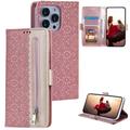 This incredibly stylish wallet case with lace pattern protects your iPhone 16 Pro Max from damage, and front zipper pocket lets you store paper money and coins.