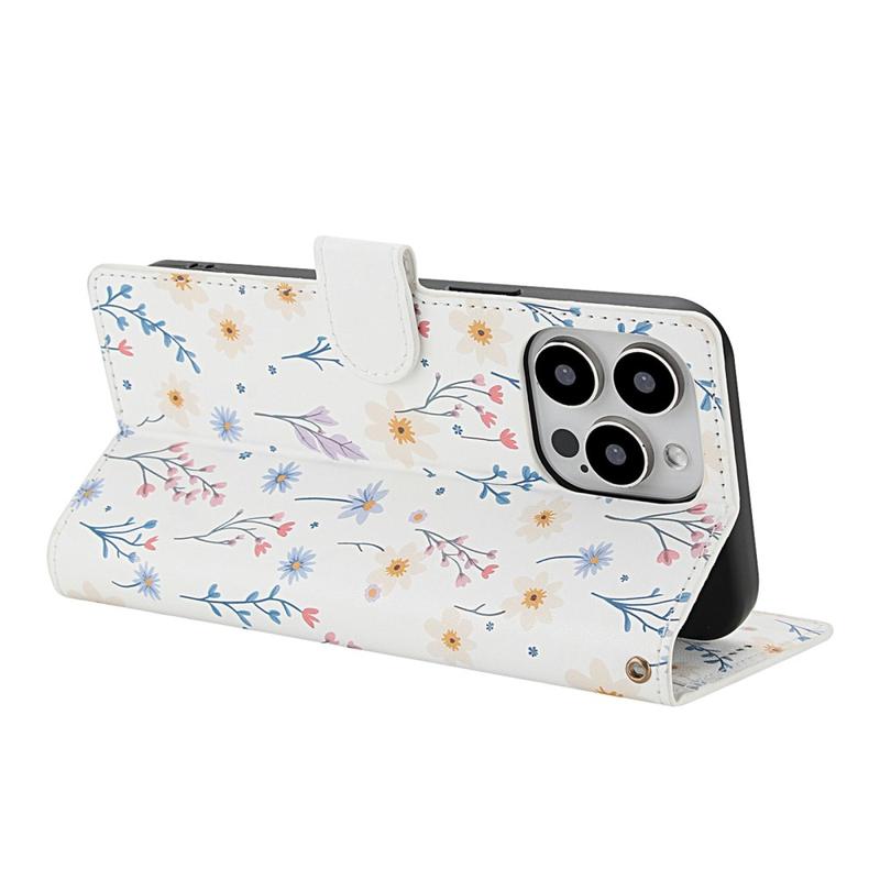 • Rhombic Floral Wallet Case for iPhone 16 Pro - with Strap and Card Slots