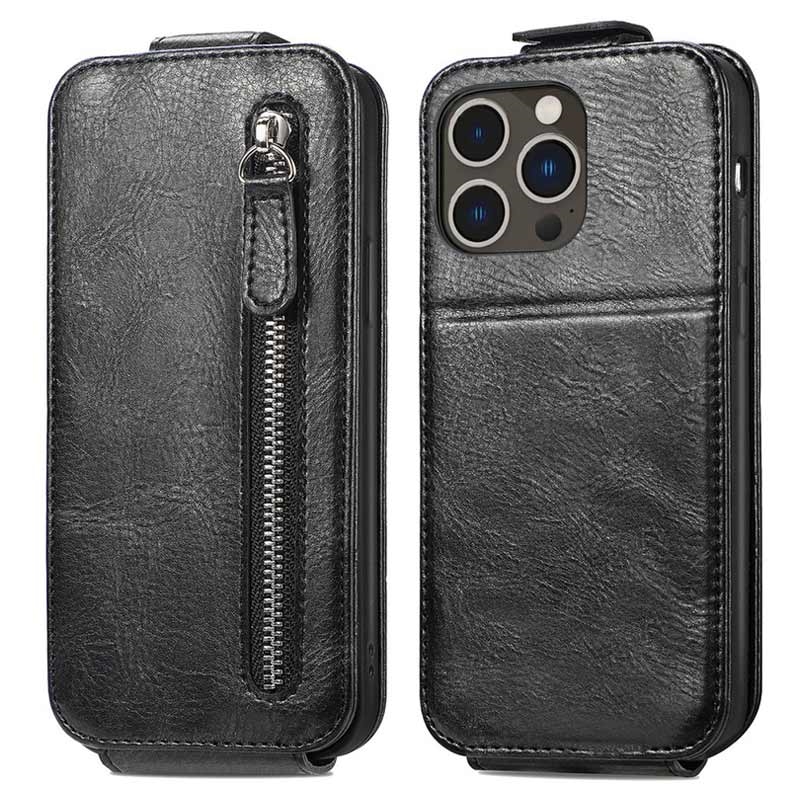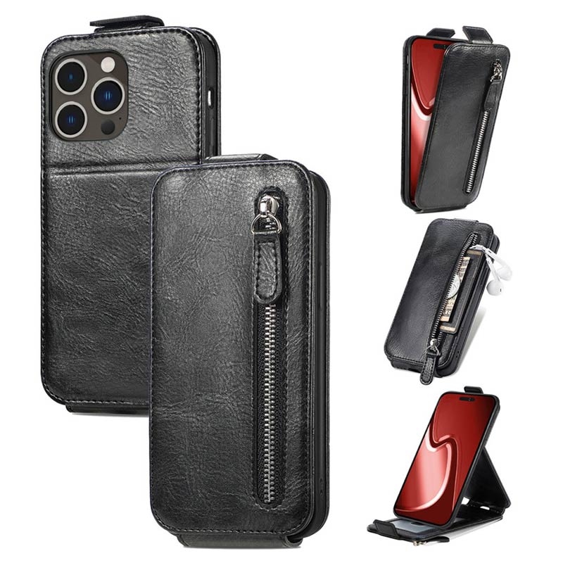 - Elegant zipper pocket vertical flip case for iPhone 16 Pro