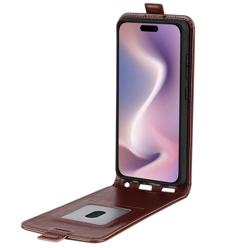 - This quality vertical flip case for iPhone 16 is made of polyurethane and TPU