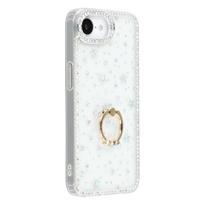 Give your iPhone 16e instant star quality and reliable everyday defence. This slim hybrid cover wraps your iPhone 16e in gleaming rhinestones, a smooth glitter back and a full-rotation metal ring that doubles as a secure grip or desk stand.