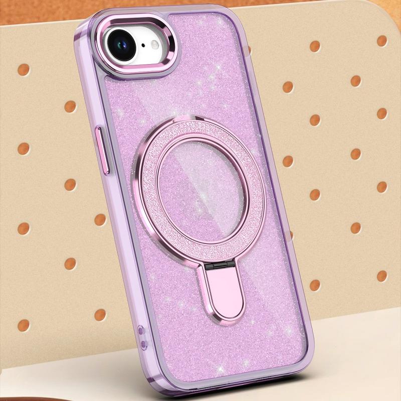 iPhone 16e Glitter Hybrid Case with Kickstand - MagSafe Compatible - Purple