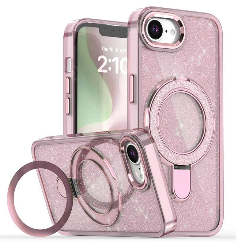 • Glitter Case with Kickstand for iPhone 16e - MagSafe Compatible TPU + PC Hybrid Kickstand Cover