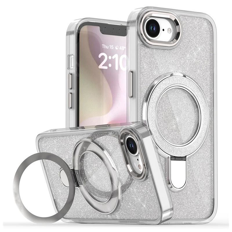 Glitter Case with Kickstand for iPhone 16e - MagSafe Compatible TPU + PC Hybrid Kickstand Cover