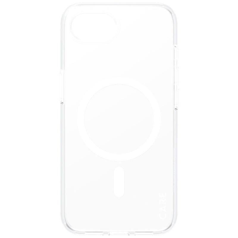 The CARE by PanzerGlass Flagship Case for iPhone 16e combines style and robust protection. Made from 100% recycled plastic, this case features military-grade drop protection, scratch resistance, and shock absorption. Its transparent design with black MagSafe compatibility ensures your iPhone 16e remains stylish while charging wirelessly.