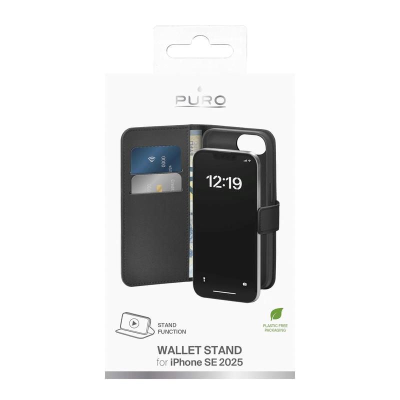Puro Wallet Case with 2 Card Slots for iPhone 16e - Magnetic Closure & Stand Function