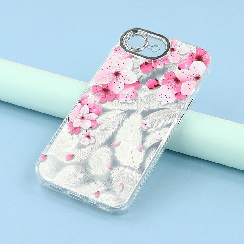 iPhone 16e Spring Electroplated IMD Hybrid Case with Camera Protector - Pink Flowers