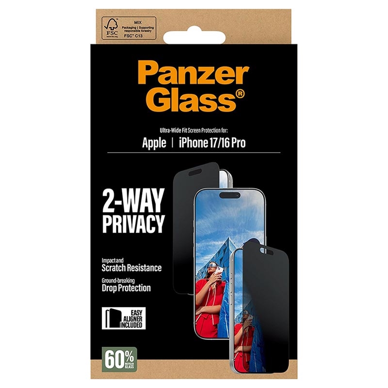 PanzerGlass Ultra-Wide Fit EasyAligner 2-Way Privacy Tempered Glass Screen Protector for iPhone 17, iPhone 16 Pro