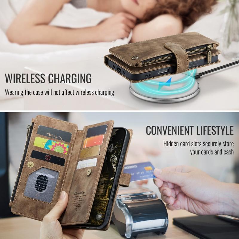 The Caseme C30 multifunctional wallet case for iPhone Air brings exceptional all-around protection and an exclusive, refined design. This elegant case is made of premium polyurethane, reinforced with a shock-resistant TPU inner cover that snuggles your iPhone Air perfectly. Meanwhile, the Caseme C30 wallet case is enhanced with numerous card slots, one large money compartment inside, and one outside zipper pocket, all protected by a secure magnetic closure.