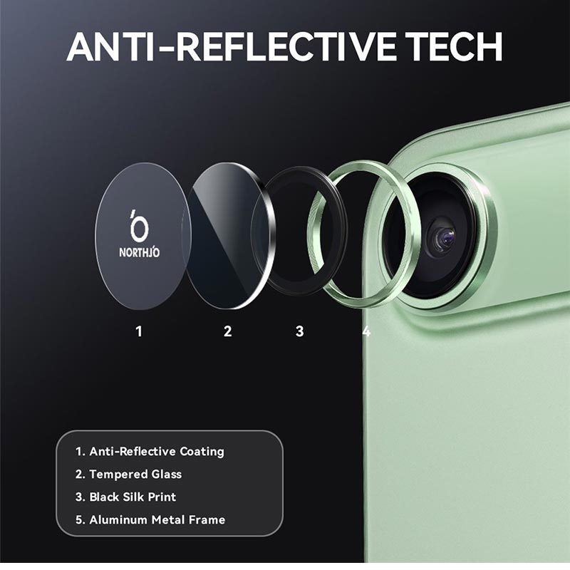 Upgrade your iPhone Air with the Northjo camera lens protector. Featuring a CD veins aluminum ring, it adds a sleek, modern touch to your iPhone Air while offering robust protection. The 9H tempered glass safeguards against scratches, impacts, and dust, ensuring your camera lens stays crystal clear. With easy, tool-free installation, you can enhance your iPhone Air durability and aesthetics in seconds.