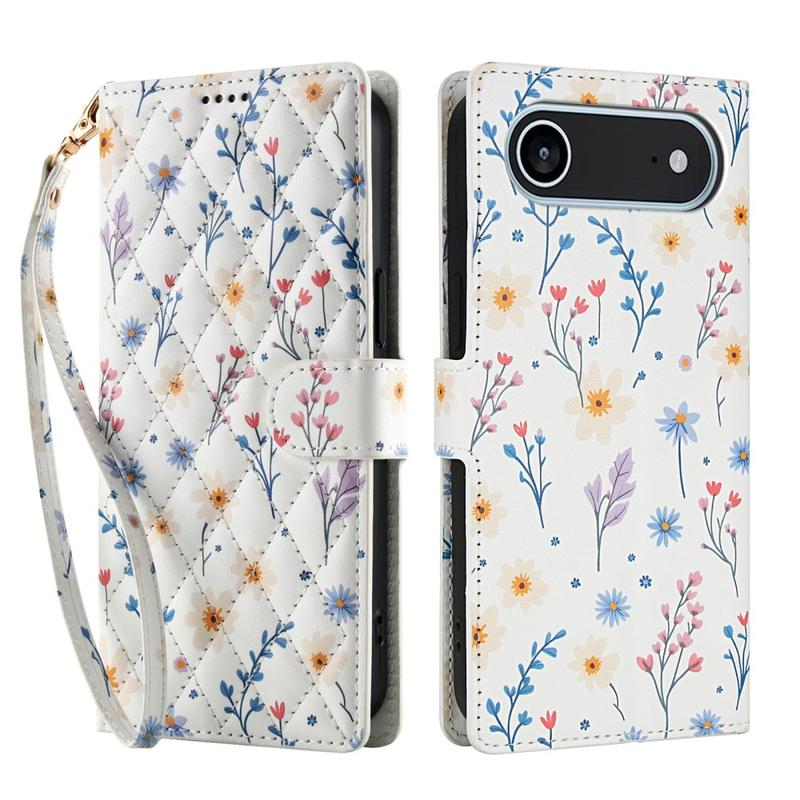 Refresh your iPhone Air with a slim flip wallet that blends secure protection and everyday practicality. The rhombic stitched front and tiny floral pattern add elegant style, while a soft TPU shell cushions drops and a polyurethane wrap guards against scratches. Multiple card slots, a cash pocket and an included wrist strap make this case the one-stop carry solution for commute, travel or night out.