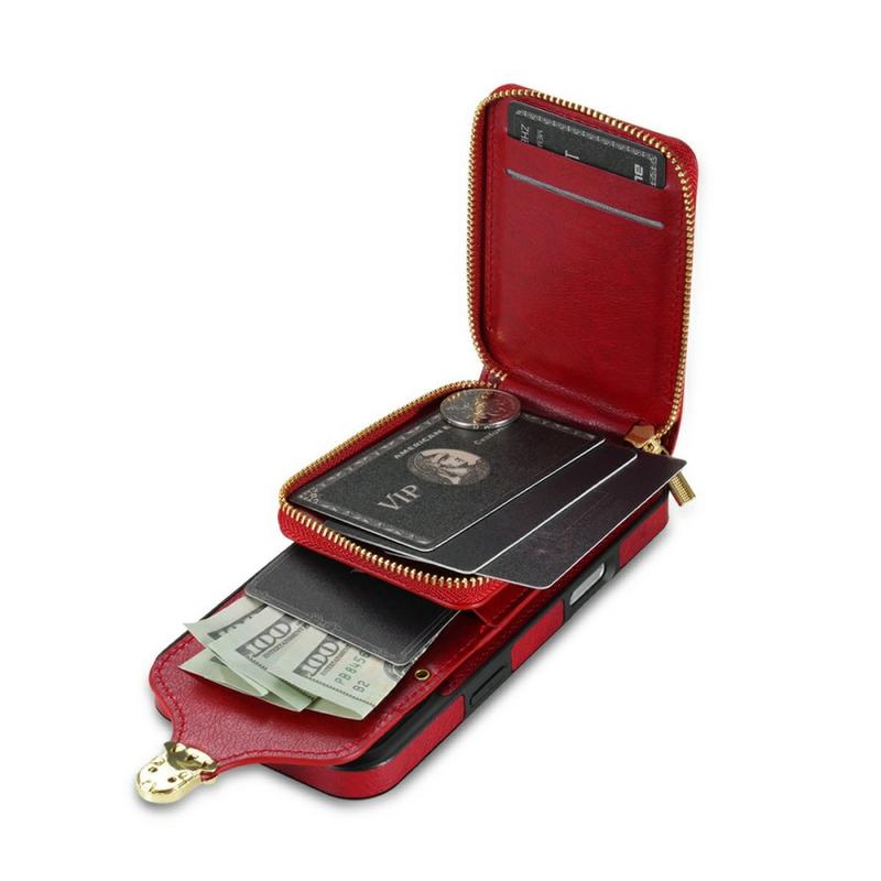 Carry your phone, cards, and cash in one sleek accessory with this wallet zipper case for iPhone 17. Made with durable TPU coated in premium polyurethane leather, it offers everyday protection while replacing the need for a separate wallet. Perfect for those who want style, convenience, and security in one.