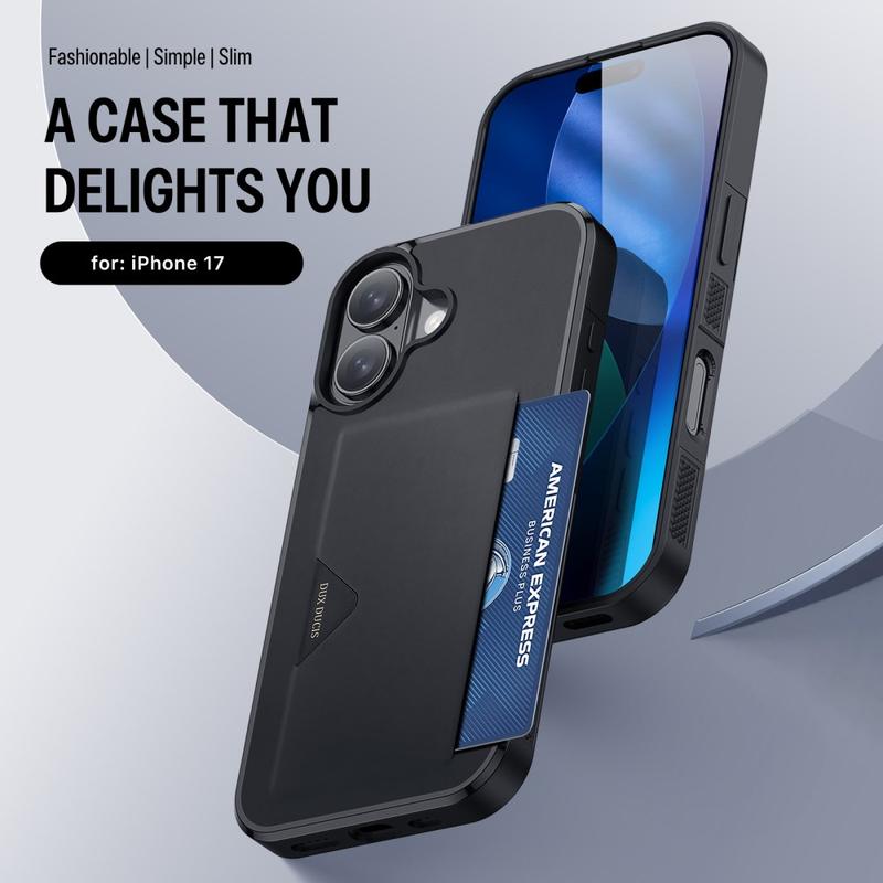 Dux Ducis Pocard Case for iPhone 17 - Slim Card Holder Protective Cover with Anti-Slip Grip & Shock Absorption