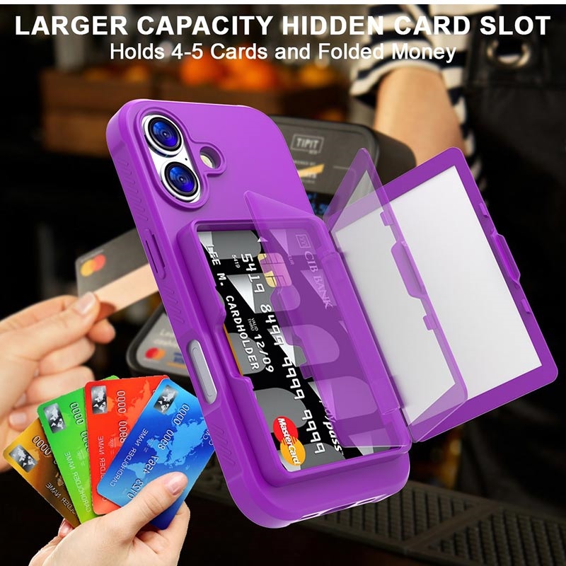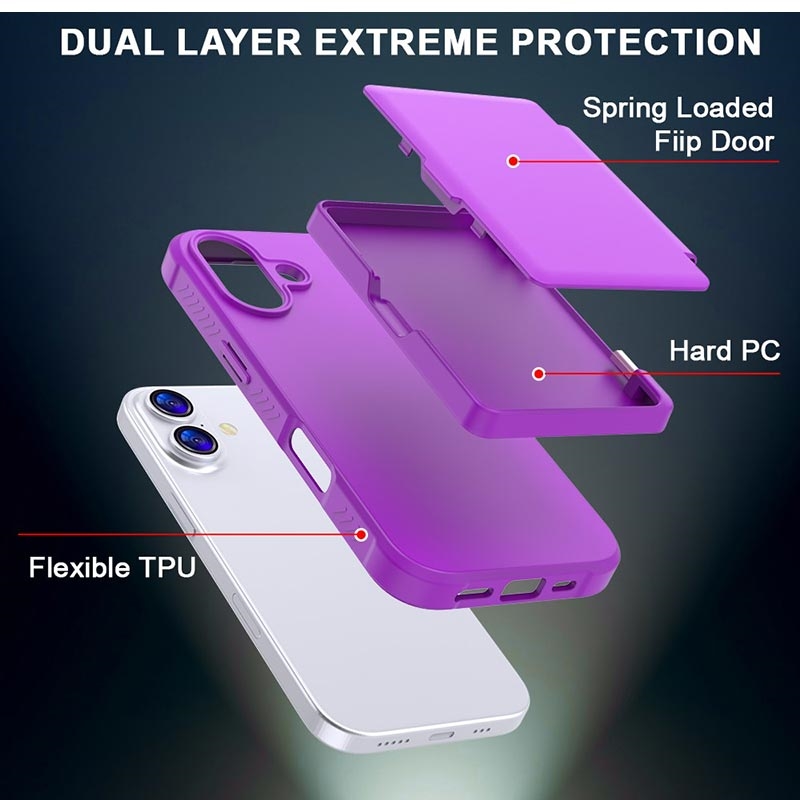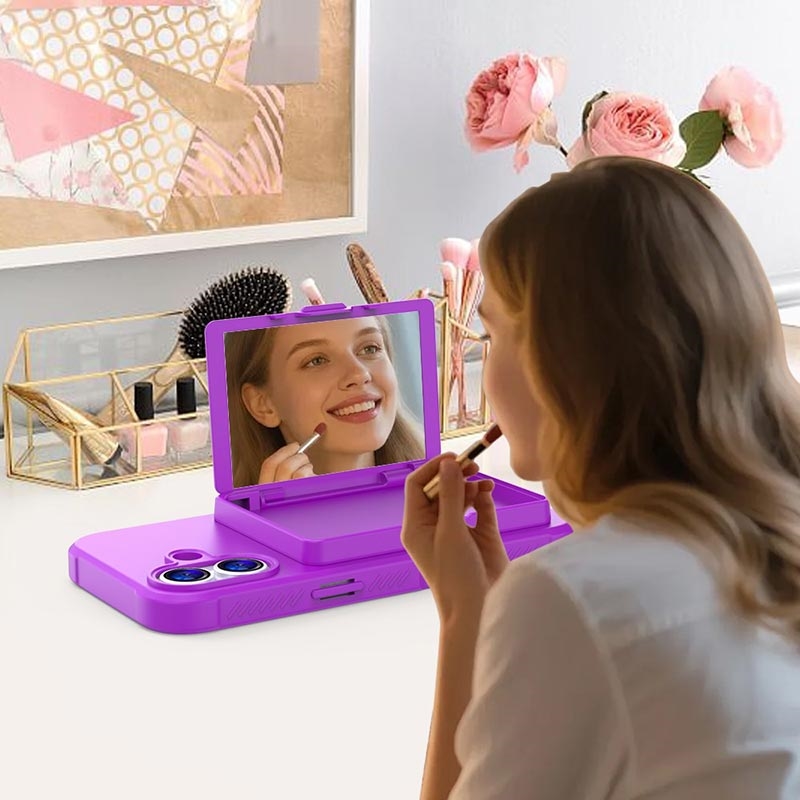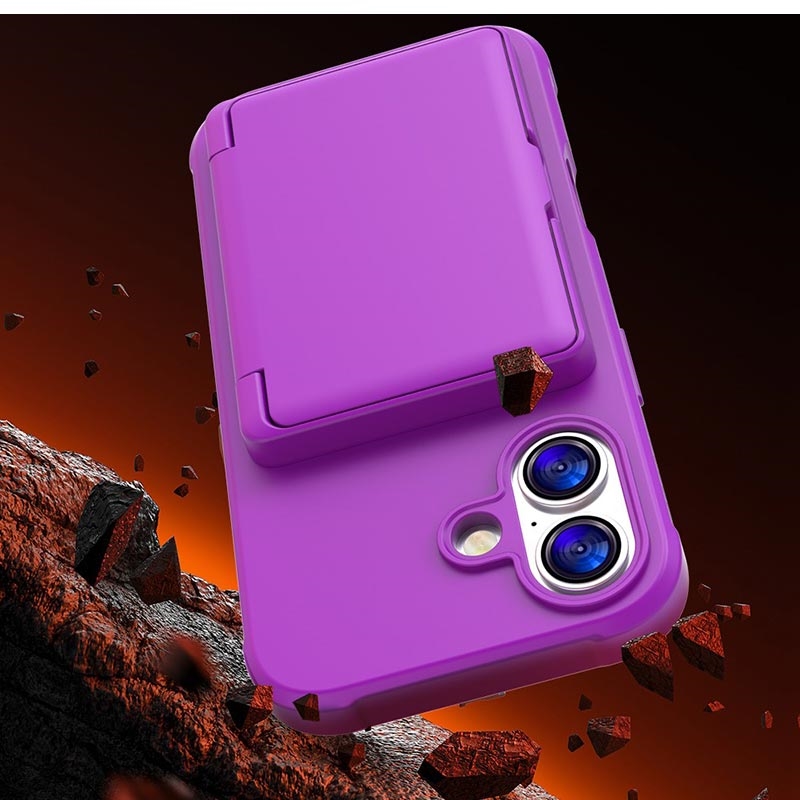 iPhone 17 Hybrid Case with Hidden Mirror & Card Slot - Purple