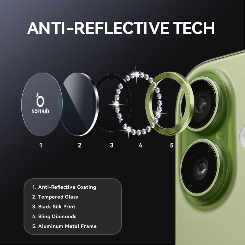 Add sparkle and protection to your iPhone 17 with the NORTHJO Camera Lens Protector. Designed with shimmering rhinestones and precision-cut tempered glass, it keeps your camera lens safe from scratches, dust, and impact while adding a touch of elegance and luxury.