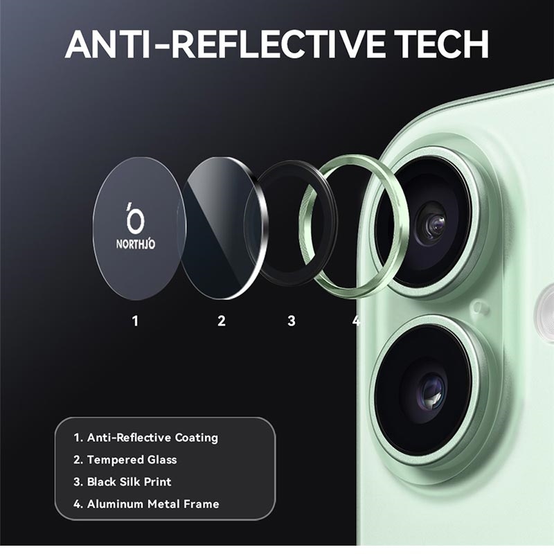 Upgrade your iPhone 17 with the Northjo camera lens protector. Featuring a CD veins aluminum ring, it adds a sleek, modern touch to your iPhone 17 while offering robust protection. The 9H tempered glass safeguards against scratches, impacts, and dust, ensuring your camera lens stays crystal clear. With easy, tool-free installation, you can enhance your iPhone 17 durability and aesthetics in seconds.