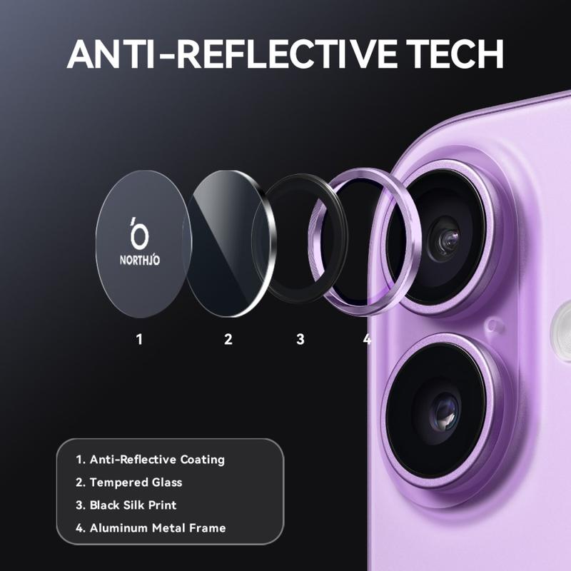 Upgrade your iPhone 17 with the Northjo camera lens protector. Featuring a CD veins aluminum ring, it adds a sleek, modern touch to your iPhone 17 while offering robust protection. The 9H tempered glass safeguards against scratches, impacts, and dust, ensuring your camera lens stays crystal clear. With easy, tool-free installation, you can enhance your iPhone 17 durability and aesthetics in seconds.