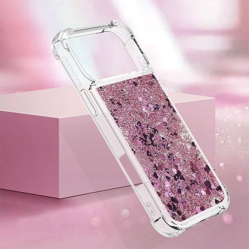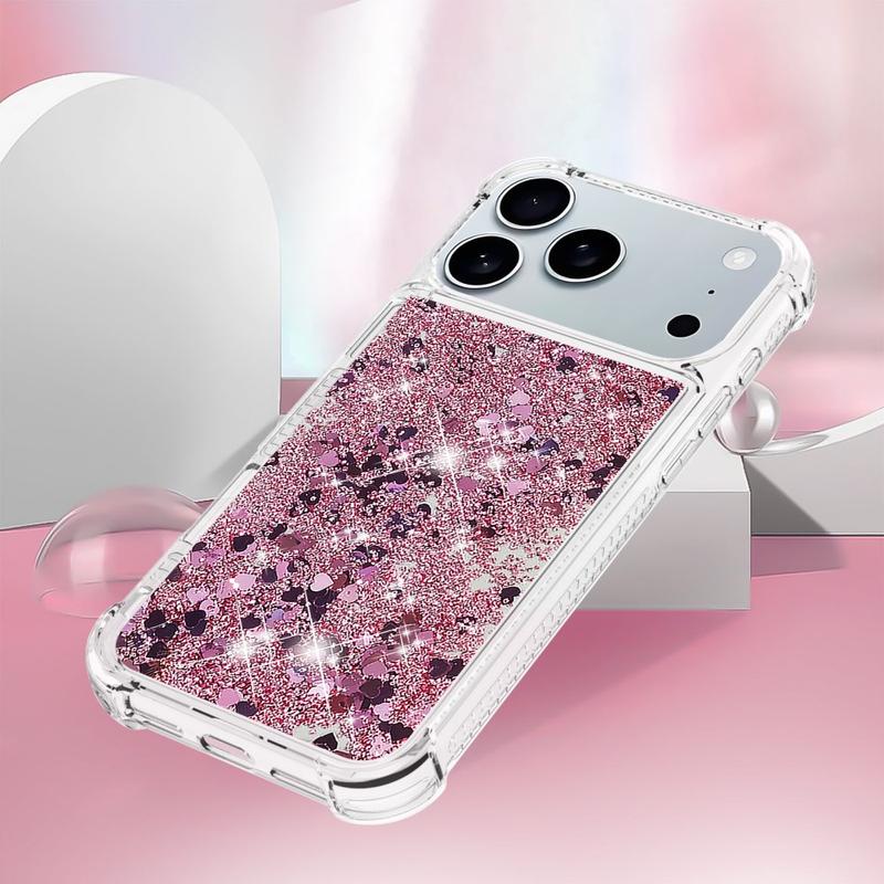 Turn every flip into a sparkle show. This ultra-slim TPU case for the iPhone 17 Pro Max combines fluid glitter hearts with shock-absorbing protection, wrapping your foldable in a fun, eye-catching layer that keeps scratches, drops and everyday scuffs at bay. Precise cut-outs leave hinges, speakers and USB-C ports fully accessible, while raised edges shield the camera lenses and outer display when you set the phone down.