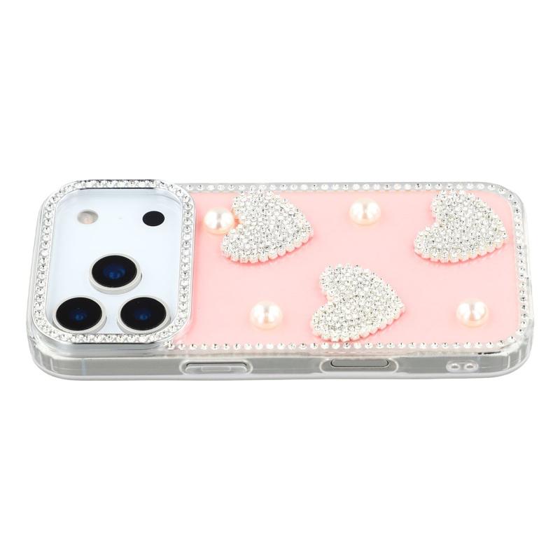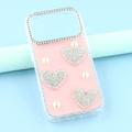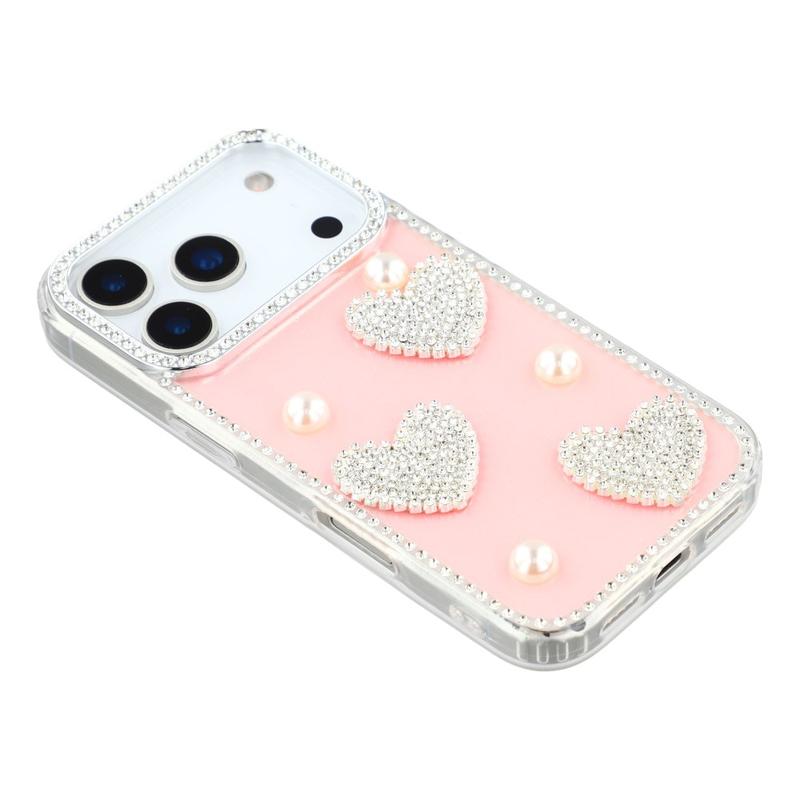 This iPhone 17 Pro Max case combines reliable everyday protection with glamorous style. Featuring shimmering rhinestones around the edges and sparkling pearl heart decorations on the back, it turns your iPhone 17 Pro Max into a fashionable accessory while keeping it safe from scratches and bumps.