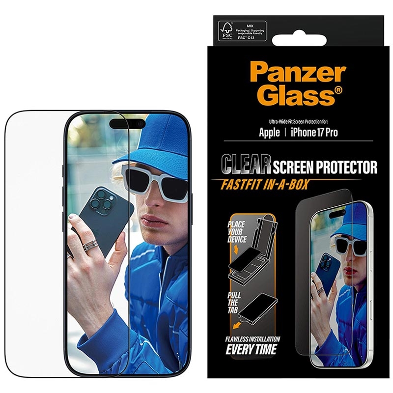 PanzerGlass Ultra-Wide Fit w. FastFit In-A-Box Tempered Glass Screen Protector for iPhone 17 Pro
