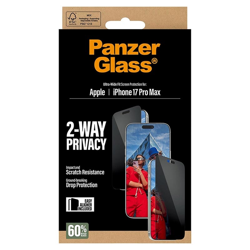 PanzerGlass Ultra-Wide Fit EasyAligner 2-Way Privacy Tempered Glass Screen Protector for iPhone 17 Pro Max