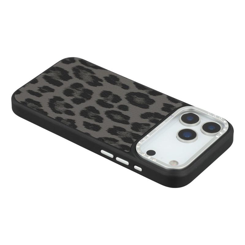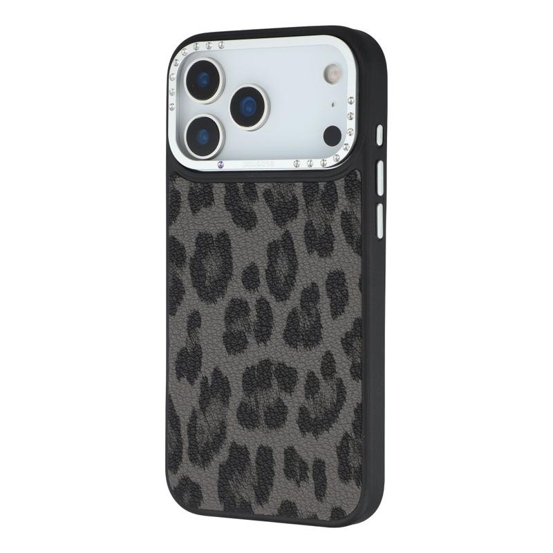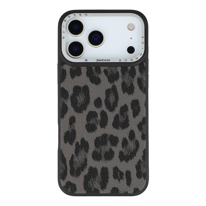 Jaucase Leopard Print Magnetic Hybrid Case for iPhone 17 Pro - PU + TPU + PC with Rhinestone Lens Frame