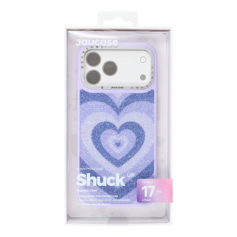 Jaucase Heart Pattern Magnetic Hybrid Case for iPhone 17 Pro – Polyurethane + TPU + PC with Rhinestone Lens Frame