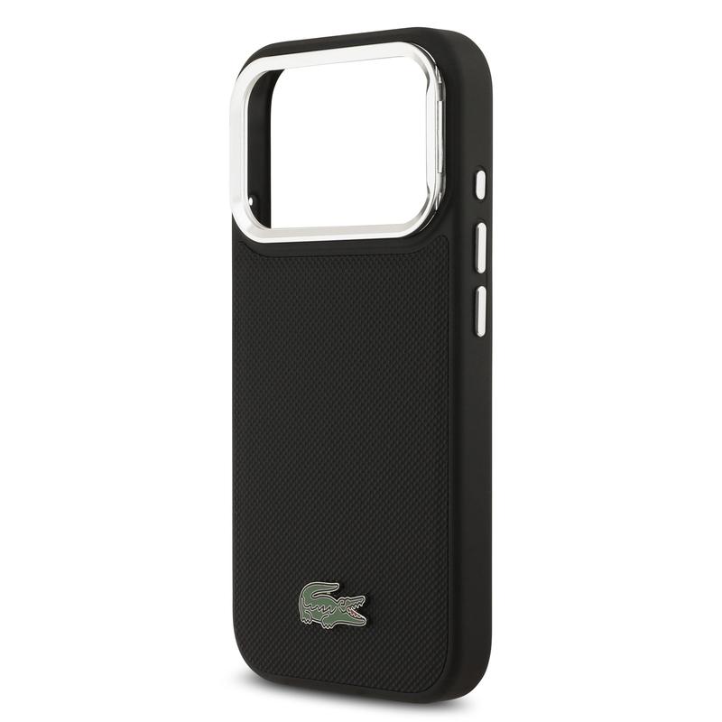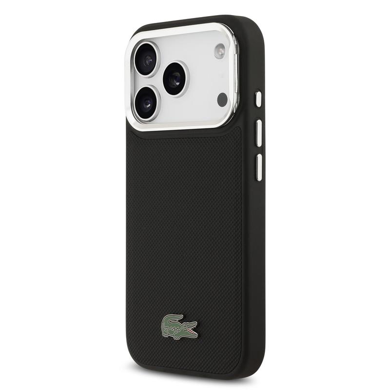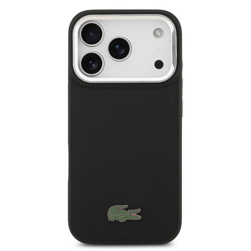 Upgrade your iPhone 17 Pro with the Lacoste Iconic Petit Piqué MagSafe Case, where fashion meets function in perfect harmony. Made from durable polyurethane with a refined textured finish, this case not only protects your phone but also elevates its look with the signature Lacoste crocodile metal logo. Inside, a soft microfiber lining keeps your device scratch-free, while the integrated camera stand offers a practical way to enjoy videos, calls, or streaming hands-free. MagSafe compatibility ensures effortless charging and accessory use without removing the case.