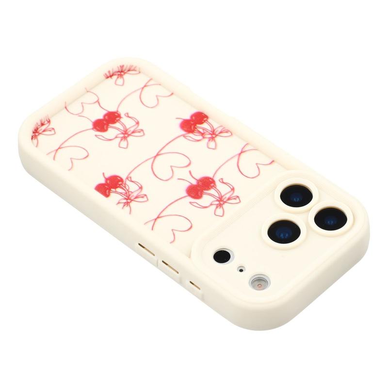 iPhone 17 Pro Stylish Shockproof TPU Case with Raised Edges - White / Bow-Tied Cherries