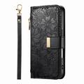 Floral & Leaf Pattern Wallet Case with Zipper Pocket & Wrist Strap for iPhone 17 Pro