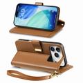 Floral & Leaf Pattern Wallet Case with Zipper Pocket & Wrist Strap for iPhone 17 Pro Max
