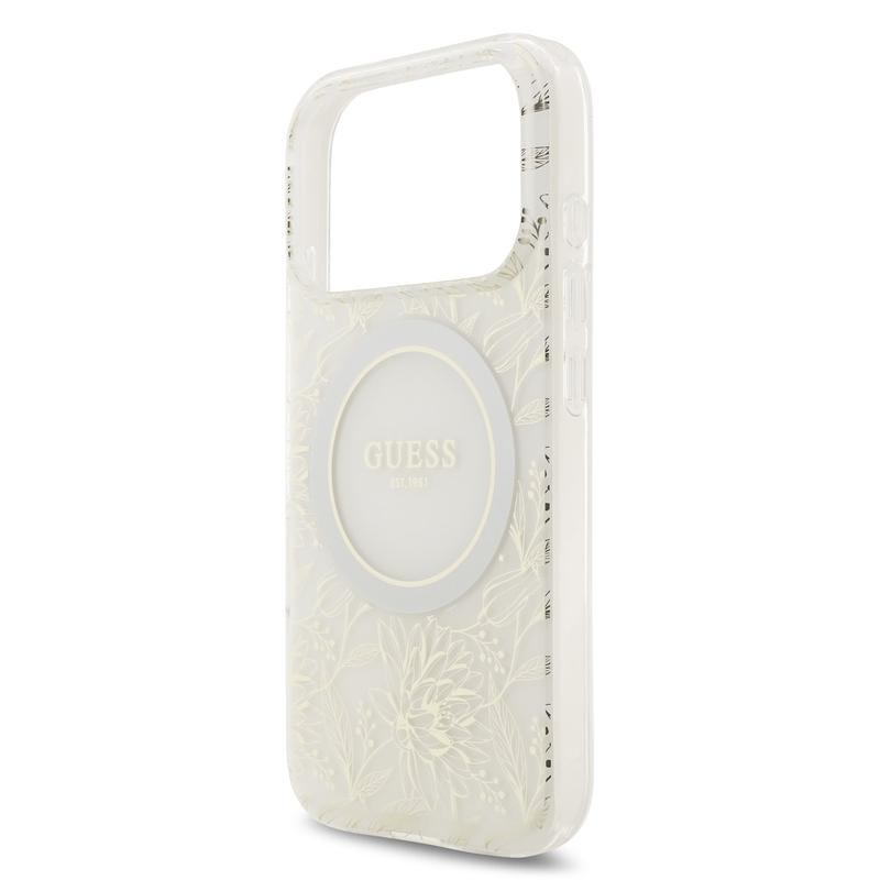 Guess IML Flowers Allover Electro Case with Pearl Strap for iPhone 17 Pro - MagSafe Compatible