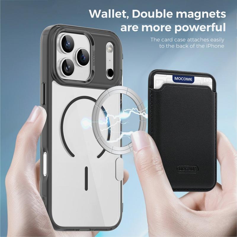 Protect your device in style with the MagSafe Case for iPhone 17 Pro, designed for both durability and convenience. Built with a hybrid TPU + PC construction, this case combines flexibility with strength to guard against drops, scratches, and daily wear. The integrated magnetic ring makes it fully compatible with MagSafe charging and magnetic car mounts, while the detachable dual-magnet slim card bag lets you carry 1-2 cards without adding bulk. A crystal-clear finish keeps your iPhone 17 Pro looking sleek and original, while reinforced edges and raised bezels ensure all-round protection for your screen and camera.
