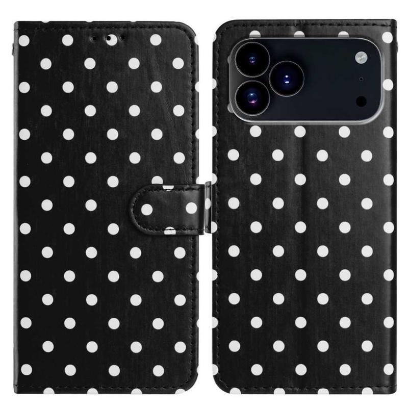 iPhone 17 Pro Max Polka Dot Pattern Wallet Case - Black