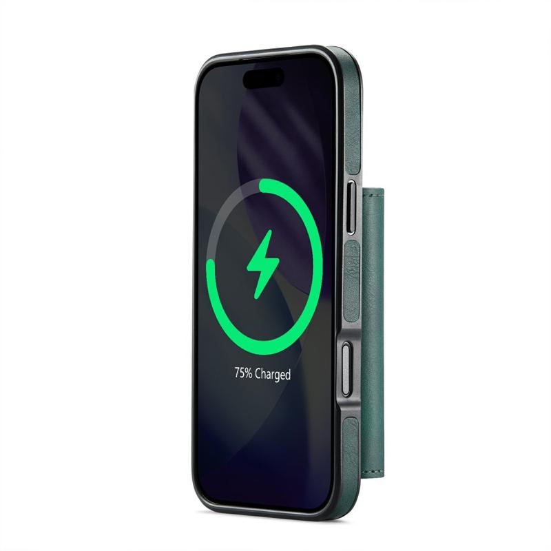 The case features a built-in magnetic ring for strong MagSafe attachment. Detach the wallet instantly and enjoy MagSafe wireless charging without removing the case.