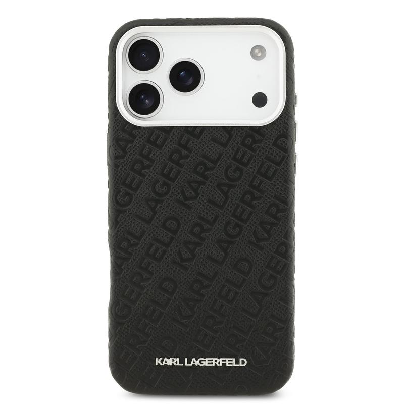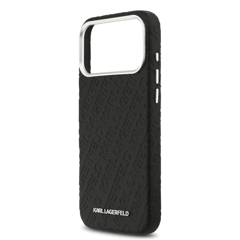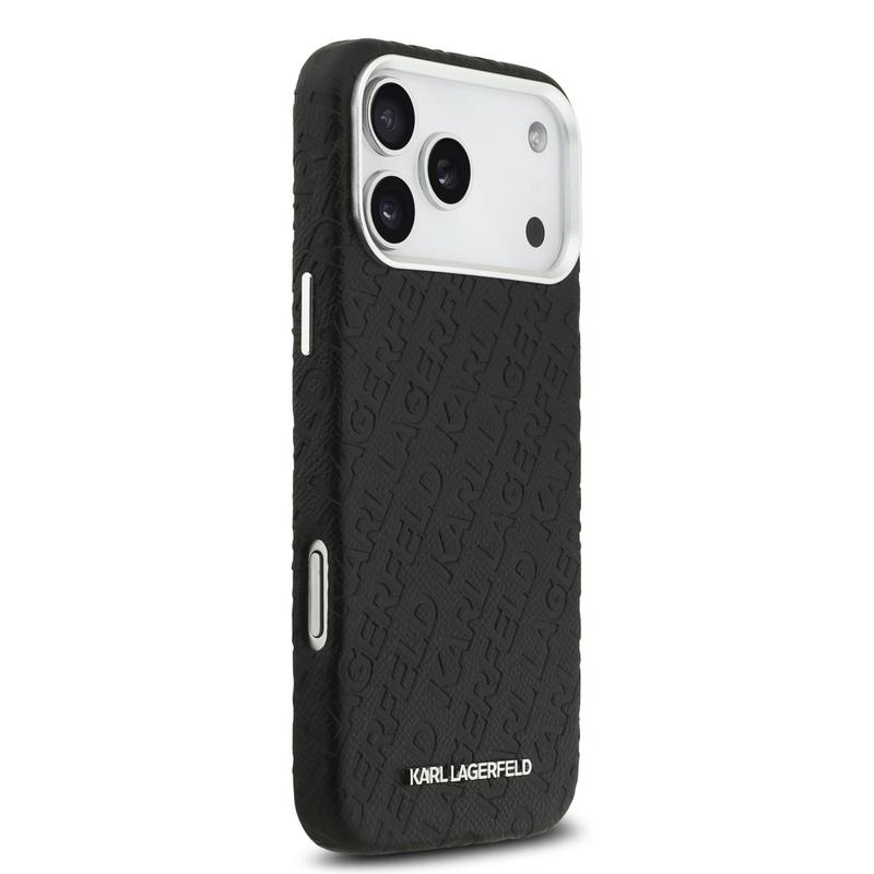 Karl Lagerfeld Grained Repeated Logo MagSafe Case for iPhone 17 Pro Max - Premium Polyurethane Back Cover