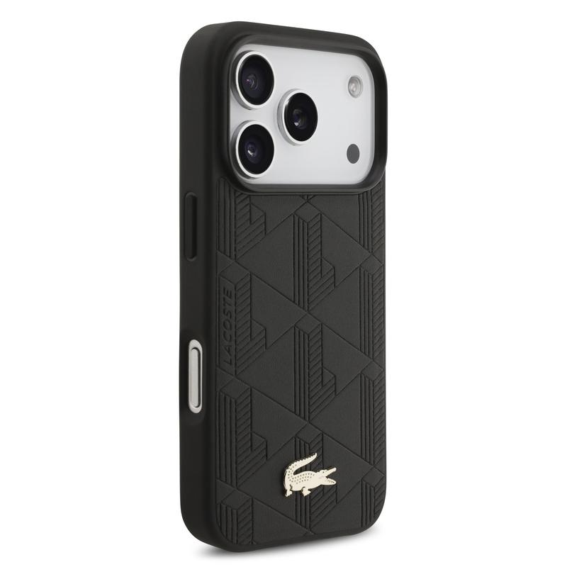 iPhone 17 Pro Lacoste Monogramme Gold Logo Case - MagSafe Compatible - Black