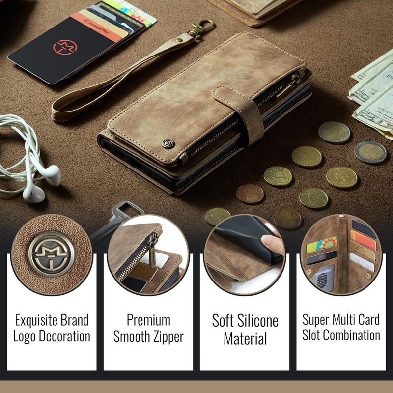 The Caseme C30 multifunctional wallet case for iPhone 17 Pro brings exceptional all-around protection and an exclusive, refined design. This elegant case is made of premium polyurethane, reinforced with a shock-resistant TPU inner cover that snuggles your iPhone 17 Pro perfectly. Meanwhile, the Caseme C30 wallet case is enhanced with numerous card slots, one large money compartment inside, and one outside zipper pocket, all protected by a secure magnetic closure.