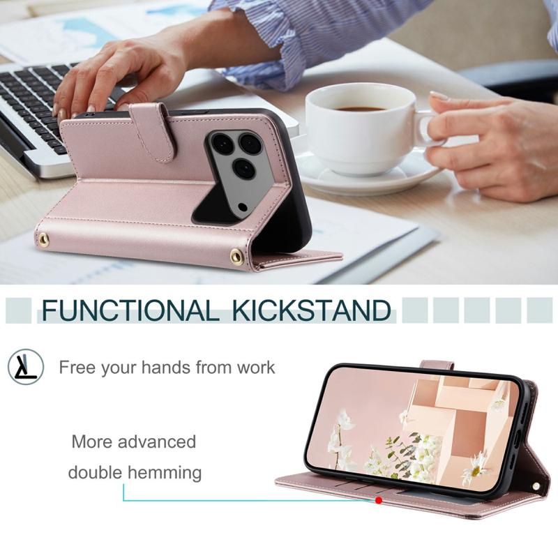Protect your iPhone 17 Pro with this luxurious quilted wallet case. Constructed with TPU material coated with PU leather, this case is scratch-resistant and anti-fingerprint, keeping your phone looking stylish and sleek. The stitching line forms a rhombus grid pattern, adding a fashionable and beautiful touch to the case. The raised edge of the camera and screen offers effective protection against scratches, while the precise cutouts provide full access to all buttons, ports, and other features. The wallet design allows for easy storage of essential cards and cash. With added protection against scratches, impact, drops, and daily damage, this case also comes with a shoulder strap and wrist strap for added convenience.