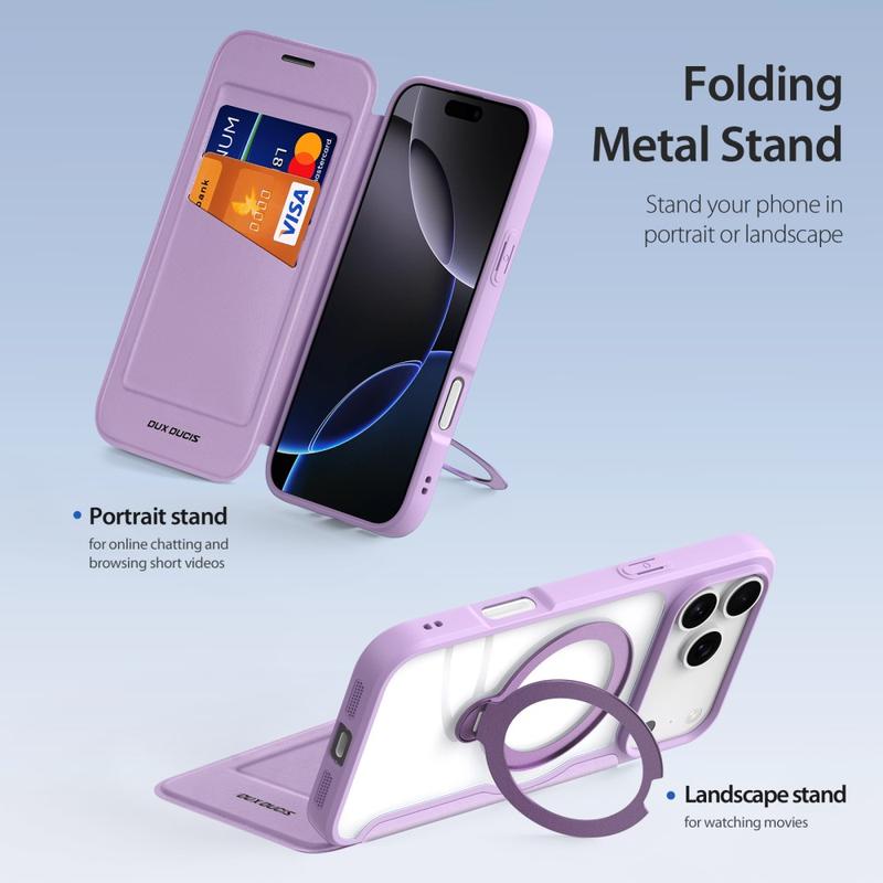 Elevate your iPhone 17 Pro Max with the Dux Ducis Skin X Pro Series Magnetic Case, designed for both style and functionality. This luxurious polyurethane case features a magnetic closure, rotary kickstand, and a convenient card slot, offering all-in-one protection and convenience. The case is crafted from premium materials, ensuring durability while maintaining a sleek and slim profile. Its versatile design makes it perfect for hands-free viewing, secure storage, and stylish protection.