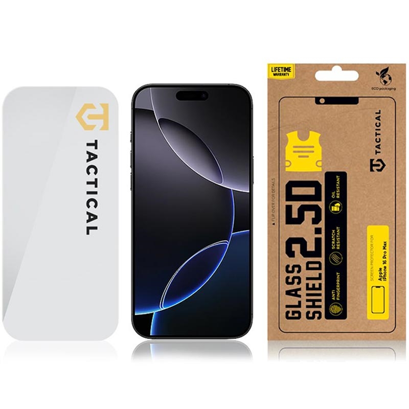 - iPhone 16 Pro Max, iPhone 17 Pro Max Tactical Glass Shield 2.5D tempered glass screen protector