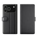A high-quality sophisticated leather case for your iPhone 17 Pro Max. Give your phone a premium look, while keeping it safe from scratches and common damage. This multifunctional soft leather wallet case has inner pockets for cards and one larger pocket for cash. On top of that iPhone 17 Pro Max genuine leather case has hands-free viewing stand and front cutout for talking with case closed.