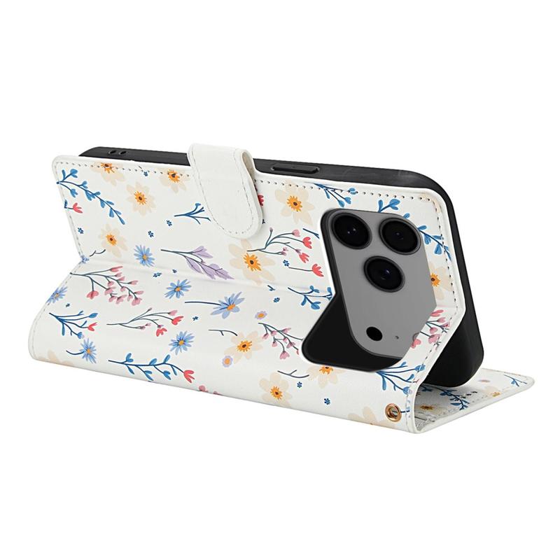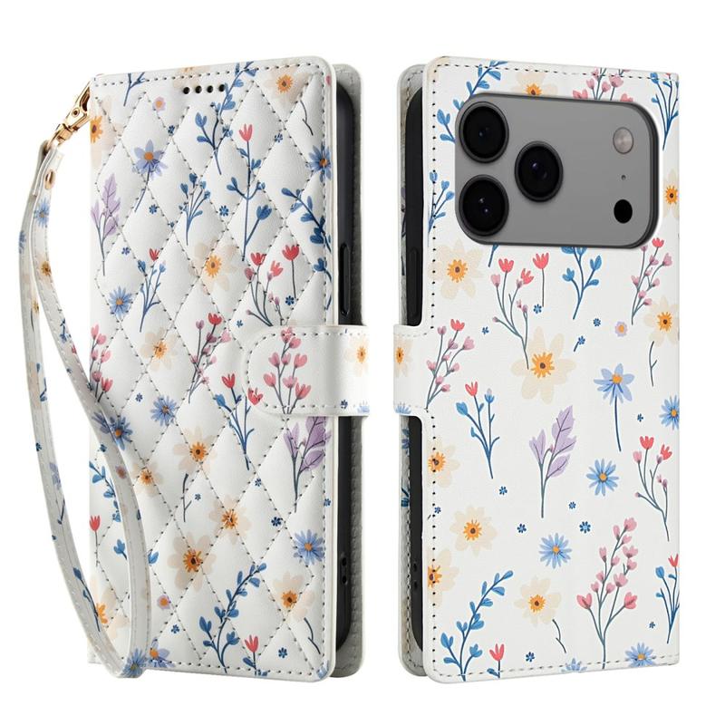 Rhombic Floral Wallet Case for iPhone 17 Pro - with Strap and Card Slots