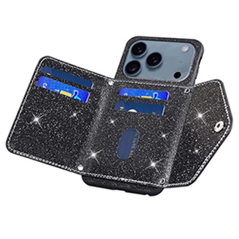 The premium quality case from the Stardust series is the right choice for protecting your iPhone 17 Pro from any potential damage. It has a card holder on the back with a snap button which is great to store your essential cards and keep them safe. A shiny glitter surface adds a touch of glamour to your phone. In addition, the cover comes with a 150cm shoulder strap, allowing you to carry your iPhone 17 Pro with you wherever you go.