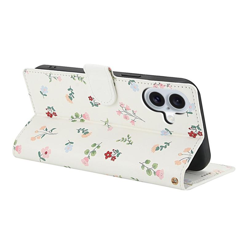 Rhombic Floral Wallet Case for iPhone 17 - with Strap and Card Slots