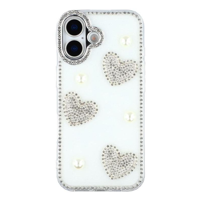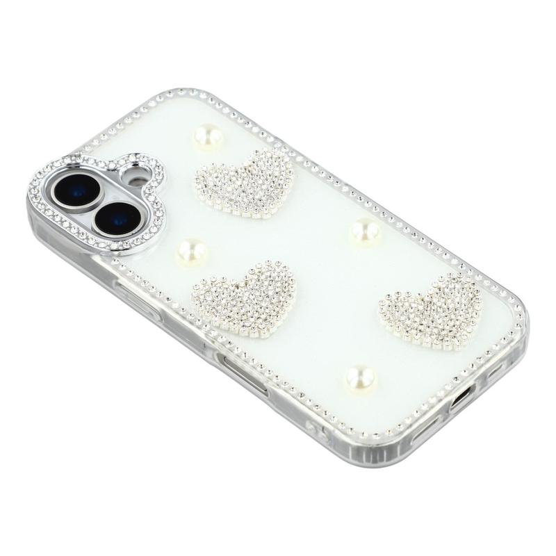 This iPhone 17 case combines reliable everyday protection with glamorous style. Featuring shimmering rhinestones around the edges and sparkling pearl heart decorations on the back, it turns your iPhone 17 into a fashionable accessory while keeping it safe from scratches and bumps.